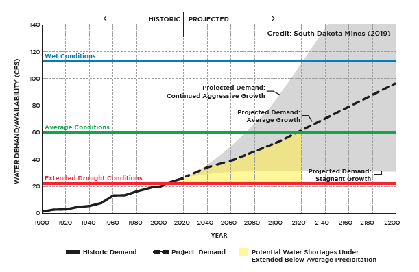 We often hear about "water restrictions," but this chart shows the why behind them. With aggressive growth in the Black Hills, our "fuel tank" is being drained faster than it can recharge. Notice the yellow area? That represents the water shortages we face if we don't change how we consume. It’s time to move beyond vague restrictions and toward intentional, water-smart landscape design.